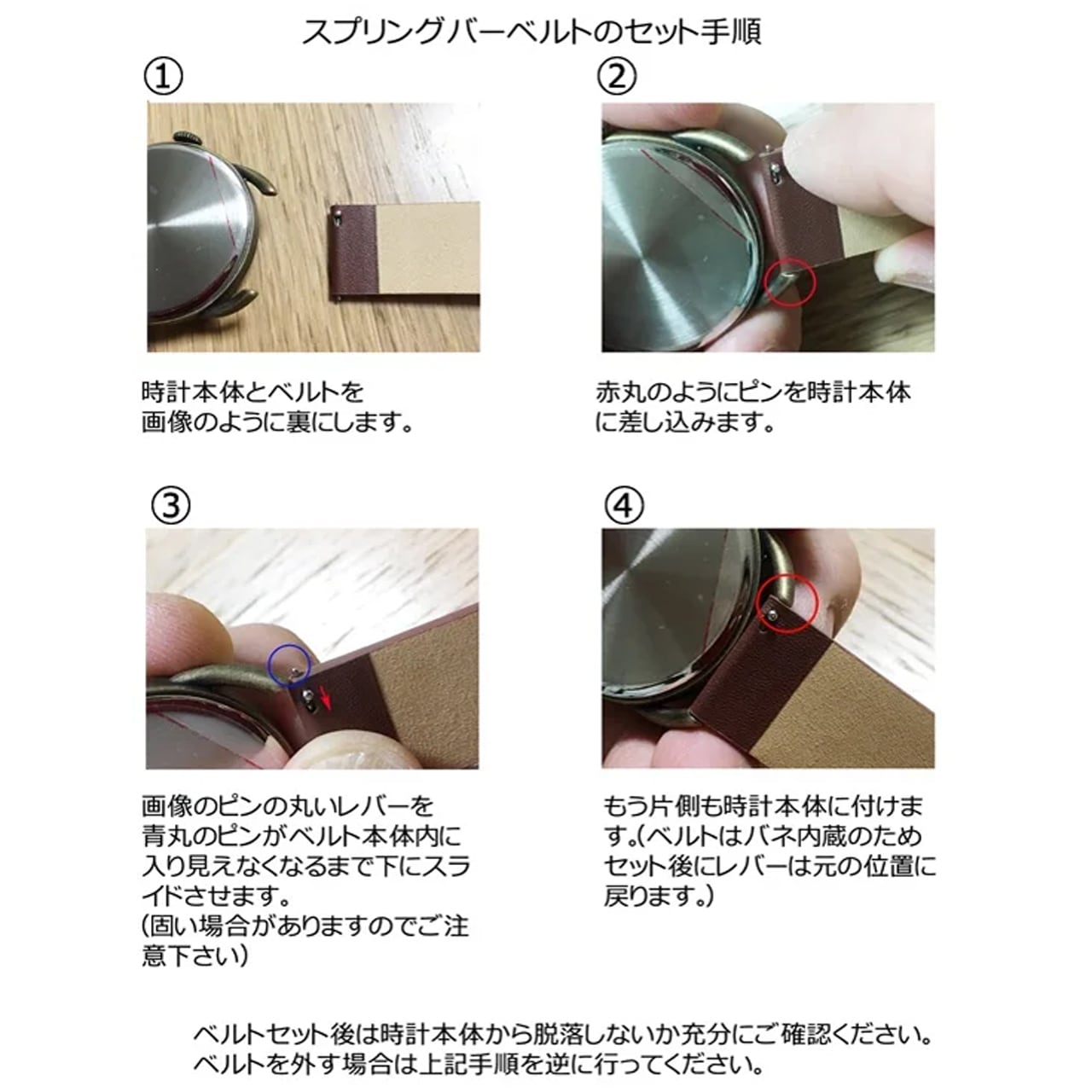 【重要】同じスプリングバー式の同じ幅ベルトであっても、当ブランドの時計以外では互換性のない可能性がございます。互換性のない場合、お手持ちの時計用にこちらのベルトをご購入されてもご使用になれません。くれぐれもご注意ください。また、他社製品の互換性有無につきまして当店では回答致しかねます。予めご了承ください。